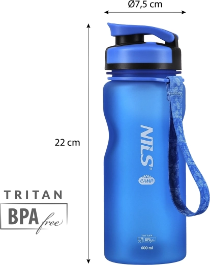 Praktyczna tritanowa butelka NILS CAMP o pojemności 600 ml jest idealna do codziennego nawadniania w domu, w pracy i w podróży. Oferuje wytrzymały materiał bez BPA, niezawodną pokrywkę typu flip-top chroniącą przed przeciekaniem, czytelną podziałkę do kontroli spożycia płynów oraz pętelkę do wygodnego noszenia. W zestawie wyjmowane sitko na owoce lub zioła.