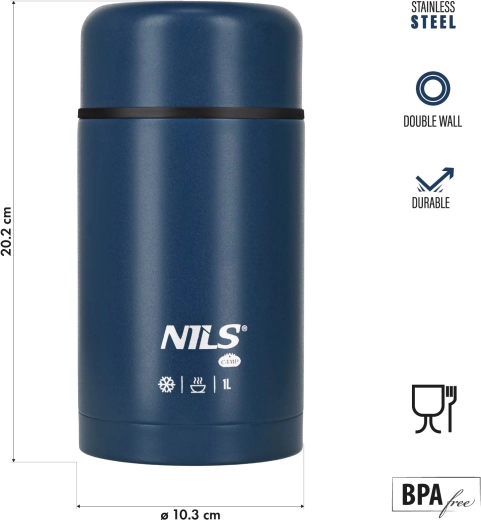 Ciesz się domowym jedzeniem gdziekolwiek jesteś – termos na jedzenie NILS Camp 1 l oferuje doskonałe połączenie pojemności, izolacji i wytrzymałości. Szeroki wlew (10,3 cm) ułatwia napełnianie i bezpośrednie serwowanie zup, kaszek czy dań głównych, a kompaktowa wysokość 20,2 cm wygodnie mieści się w większości plecaków i toreb.