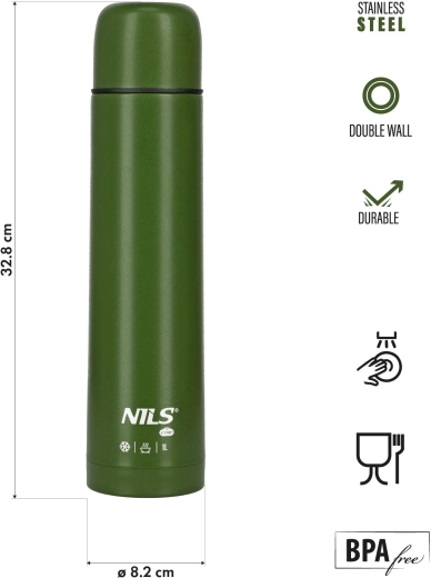 Praktyczna konstrukcja ze szczelnym zakręcanym zamknięciem zapobiega wyciekom, niezależnie od tego, czy przenosisz termos w plecaku, czy w samochodzie. Dzięki średnicy 8,2 cm wygodnie leży w dłoni i pasuje do standardowych uchwytów na napoje, a wysokość 32,8 cm zapewnia pojemność 1 litra bez zbędnej objętości.