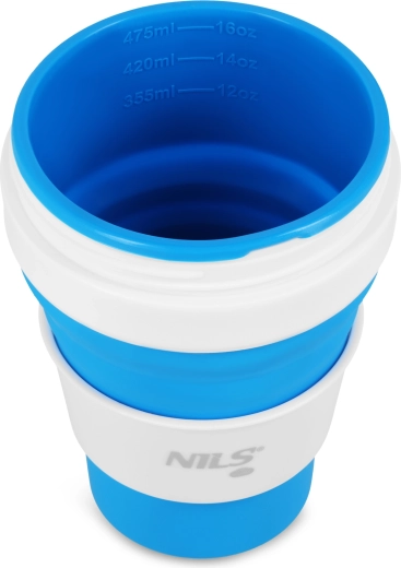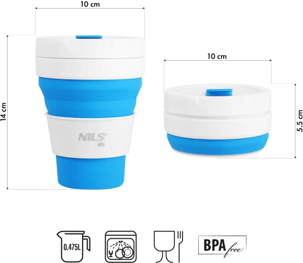 Składany silikonowy kubek NILS Camp to sprytne rozwiązanie dla tych, którzy chcą podróżować lekko, bez kompromisów w komforcie. Po rozłożeniu oferuje pojemność 475 ml na gorące i zimne napoje, a po użyciu w kilka chwil zmniejsza się do kompaktowej wysokości około 5,5–6 cm – idealny do plecaka, torby czy kieszeni.
