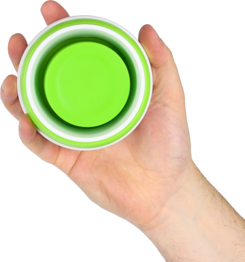 Kubek złożysz w kilka chwil do wysokości ok. 6,5–7 cm. Łatwo mieści się w plecaku, torebce czy kieszeni i oszczędza miejsce w podróży.