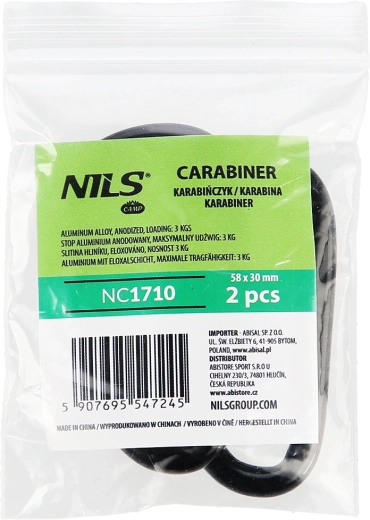 Praktyczny zestaw 2 aluminiowych karabińczyków NILS Camp do codziennego użytku w plenerze i w mieście. Trwała anodowana powłoka chroni przed korozją, a sprężynowy zamek zapewnia szybkie przypięcie. Każdy karabińczyk utrzyma do 3 kg – idealnie nadaje się do kluczy, butelek, akcesoriów do plecaka czy organizacji wyposażenia w namiocie.