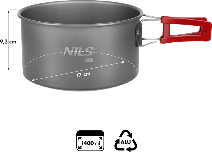 Garnek NILS Camp o pojemności 1400 ml został zaprojektowany do wygodnego gotowania na łonie natury – od szybkiego zagotowania wody po przygotowanie zupy czy makaronu dla jednej lub dwóch osób. Trójmateriałowa konstrukcja z aluminium, stali nierdzewnej i ABS zapewnia wysoką trwałość, wydajne rozprowadzanie ciepła oraz bezpieczny chwyt.