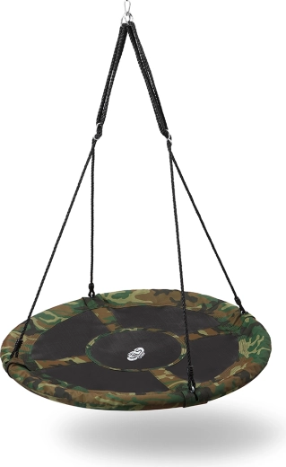 Maskująca huśtawka bocianie gniazdo NILS CAMP zapewnia dzieciom i dorosłym godziny aktywnej zabawy i relaksu. Szerokie siedzisko z oddychającą siatką oraz solidna stalowa rama z pianką PE chronią podczas bujania i gwarantują maksymalny komfort. Dzięki udźwigowi 150 kg i średnicy 110 cm może z niej korzystać jednocześnie kilkoro dzieci.