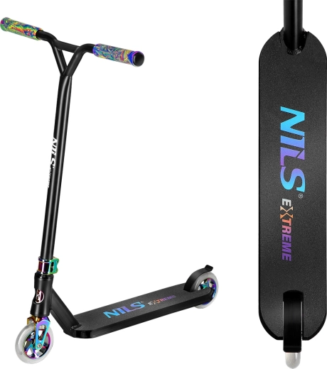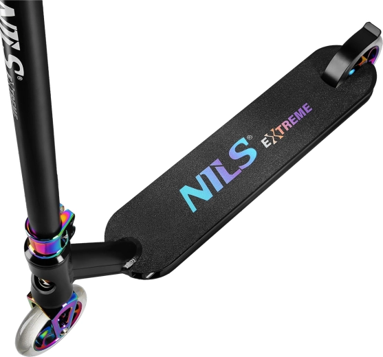 Freestyle’owa hulajnoga NILS Extreme HS024 Pro została zaprojektowana dla dzieci, młodzieży i dorosłych, którzy potrzebują niezawodnego i solidnego modelu do skateparku, ramp U oraz miejskiego asfaltu. Sztywna konstrukcja bez mechanizmu składania i bez regulowanej wysokości kierownicy maksymalizuje wytrzymałość przy lądowaniach i wymagających trikach.