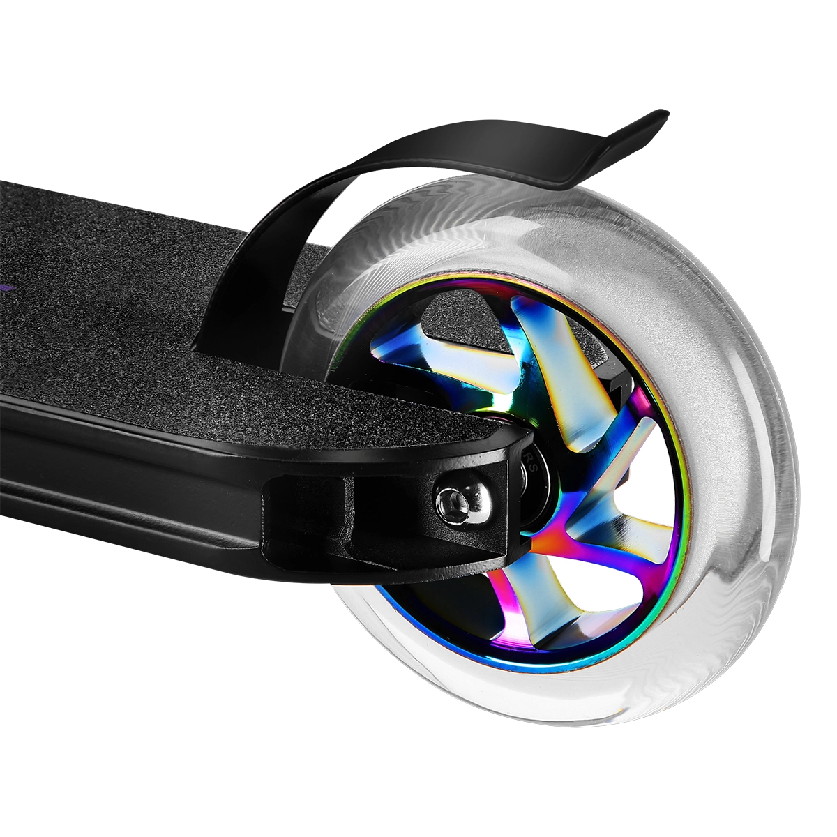 Aluminiowy, pięciokomorowy deck oraz szeroka stalowa kierownica wytrzymują twarde lądowania. Kierownica obracana o 360° z gumowymi gripami zwiększa kontrolę nad trikami.