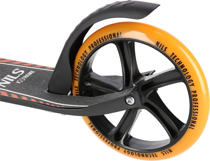 Ciesz się płynną i bezpieczną jazdą z hulajnogą NILS Extreme HM0107. Lekka, a jednocześnie solidna aluminiowa rama szybko się składa, dzięki czemu łatwo zabierzesz hulajnogę do komunikacji miejskiej lub schowasz do bagażnika samochodu. Duże poliuretanowe koła o średnicy 200 mm z łożyskami ABEC 7 zapewniają szybkie i komfortowe przemieszczanie się po mieście.