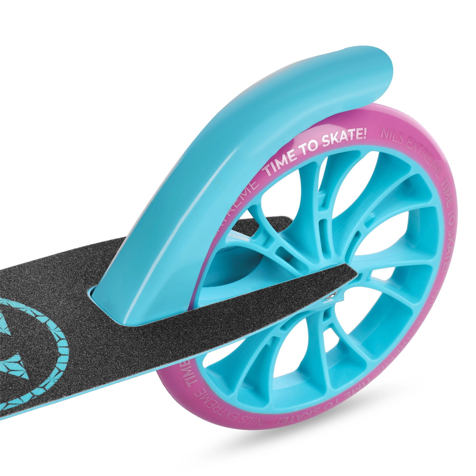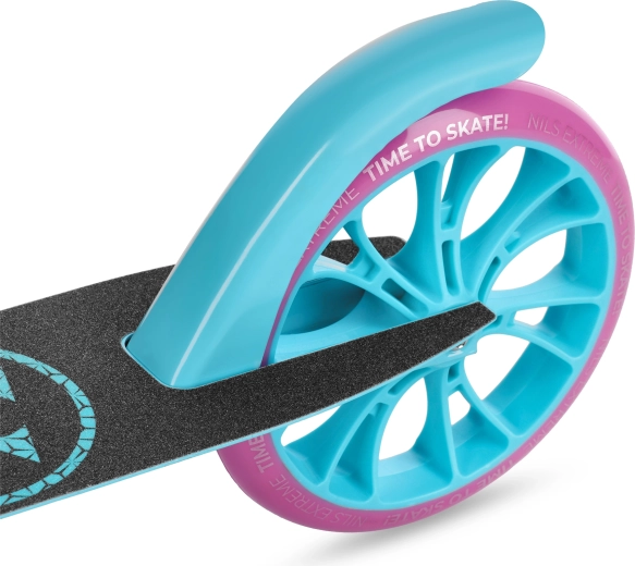 Hulajnoga NILS Extreme HM1302 to idealny wybór do miasta. Duże koła o średnicy 200 mm z polipropylenową piastą i poliuretanową oponą zapewniają stabilność, tłumienie nierówności i pewny chwyt na asfalcie i kostce. Łożyska ABEC-7 minimalizują tarcie, dzięki czemu łatwo się rozpędza i utrzymuje tempo bez wysiłku.