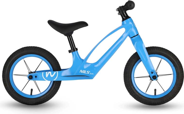 Rowerek biegowy NILS Fun RB901 jest idealny na pierwsze kroki w kolarstwie. Lekka rama ze stopu magnezu (tylko 3,8 kg) łączy sztywność i niską wagę dla łatwego prowadzenia oraz lepszej nauki równowagi. Pompowane opony 12" świetnie tłumią nierówności, a kolorowe oświetlenie LED kół zwiększa bezpieczeństwo i frajdę z jazdy.