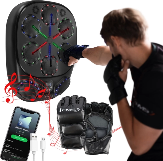 Zwiększ intensywność domowego treningu z elektroniczną tarczą bokserską HMS TB10. Oferuje większą powierzchnię uderzeniową, dynamiczne podświetlenie LED, Bluetooth z wbudowanym głośnikiem oraz 9 inteligentnych programów treningowych. Dzięki wyświetlaczowi z wynikami w czasie rzeczywistym i wydajnemu akumulatorowi wynosi trening kondycyjny i sportów walki na nowy poziom. W zestawie znajdziesz także profesjonalne rękawice MMA.