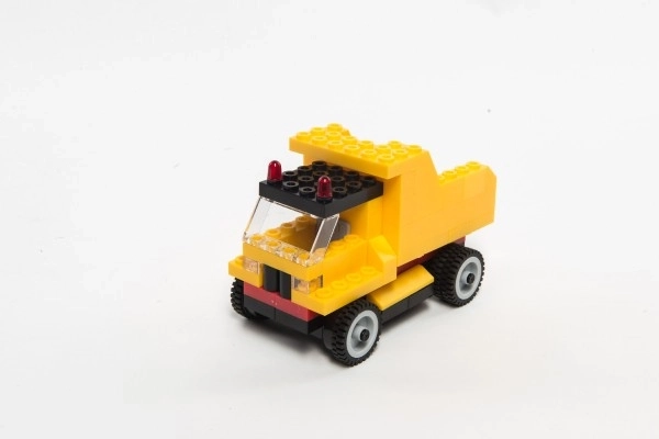 Prosty model samochodu wywrotki poszerza możliwości zabawy i wspiera kreatywne budowanie.