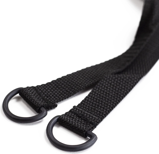 Odporne nylonowe pasy z oczkami na końcach umożliwiają zabezpieczenie drabinki przed przesuwaniem, dzięki czemu możesz skupić się na wydajności i technice pracy nóg.
