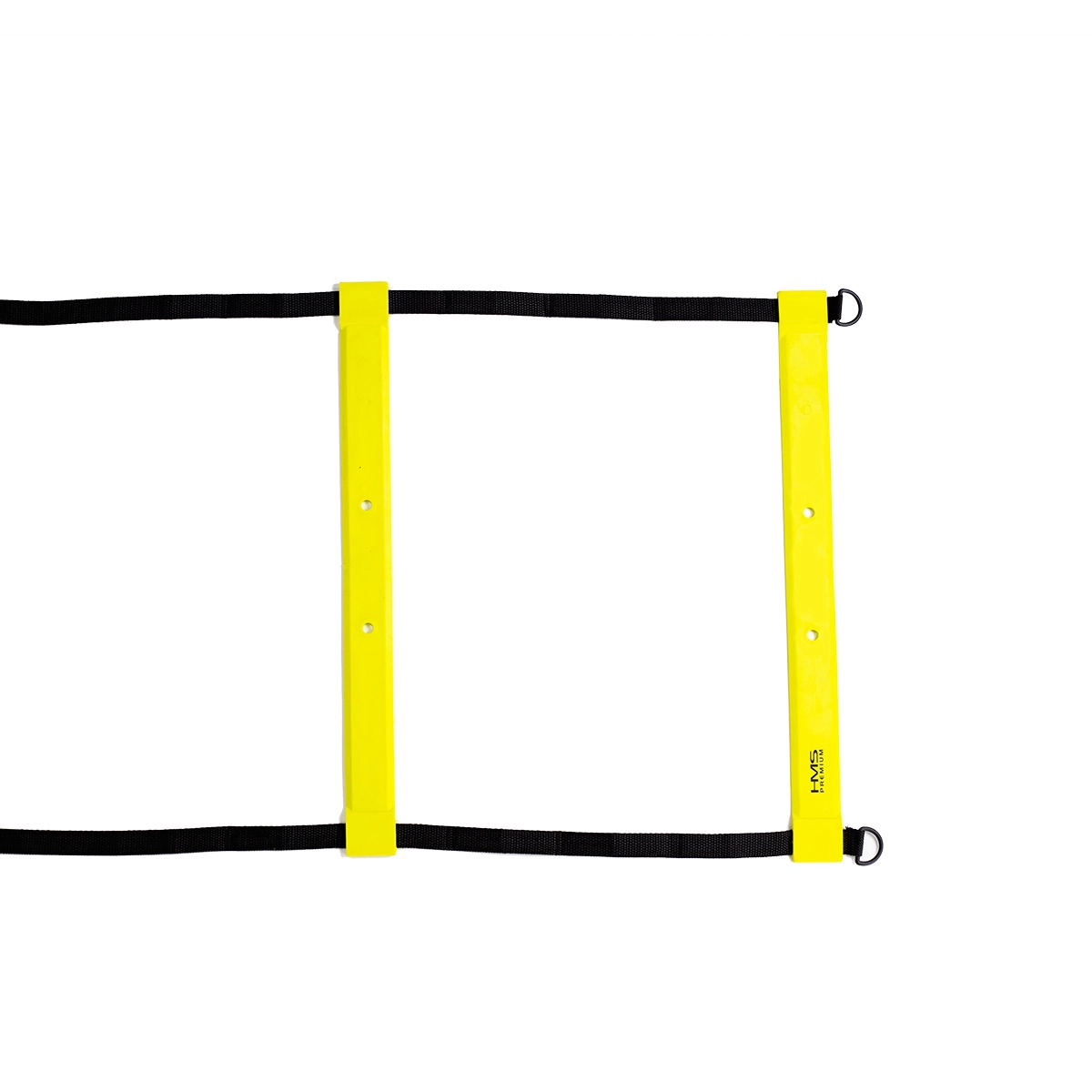 Treningowa drabinka HMS Premium 6 m to uniwersalne narzędzie dla lekkoatletów, drużyn i sportowców rekreacyjnych. Solidne płaskie szczeble z TPE na wytrzymałych nylonowych pasach zapewniają stabilny krok i płynny ruch podczas ćwiczeń na szybkie nogi, zmian kierunku oraz pracy stawów skokowych. Dzięki wyrazistemu żółtemu kolorowi drabinka jest doskonale widoczna w hali i na zewnątrz.