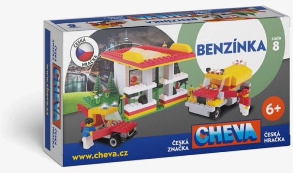 Odkryj klasyczne czeskie klocki CHEVA 8 stacja benzynowa z 349 elementami, które wprowadzają dzieci w świat stacji paliw, cysterny i pojazdu holowniczego. Zmienny system elementów wspiera kreatywność, wyobraźnię i zręczność, a także doskonale uzupełni twoje miasteczko CHEVA.