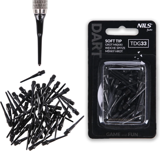 Zapasowe plastikowe groty NILS Fun TDG33 z gwintem 2BA są idealne do tarcz elektronicznych. Oferują miękkie wykonanie, wysoką trwałość oraz wygodne opakowanie 50 sztuk dla bezproblemowej gry.