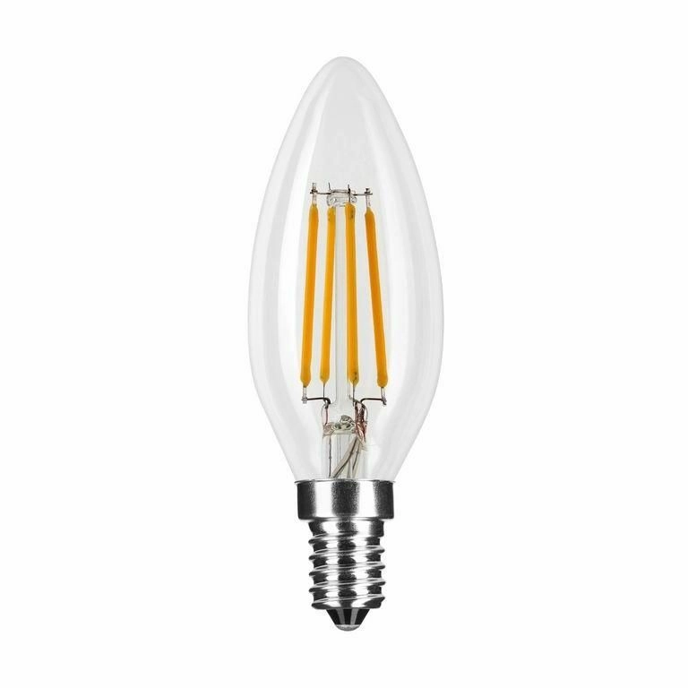 Elegancka żarówka LED w kształcie świeczki z trzonkiem E14 i mocą 4 W zapewnia jasne 470 lm ciepłego białego światła 2700 K. Dzięki technologii filament świeci pod kątem 360°, ma długą żywotność 35 000 h i świetną efektywność dla oszczędnego i stylowego oświetlenia.