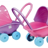Uroczy plastikowy wózek dla lalek, idealny dla małych mam przy spacerach. Różowo-fioletowy design przyciąga wzrok i sprawi radość każdemu dziecku.