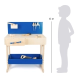 Odkryj urok pracy rzemieślniczej z drewnianym stołem warsztatowym, który jest idealny do wspierania dziecięcej kreatywności i zręczności manualnej. Dzięki solidnej konstrukcji i możliwości regulacji wysokości powierzchni roboczej, stół ten jest zaprojektowany dla zarówno praworęcznych, jak i leworęcznych użytkowników. Jego niebieski kolor i praktyczne rozwiązania przechowywania oferują nie tylko estetyczne zadowolenie, ale również maksymalną funkcjonalność.