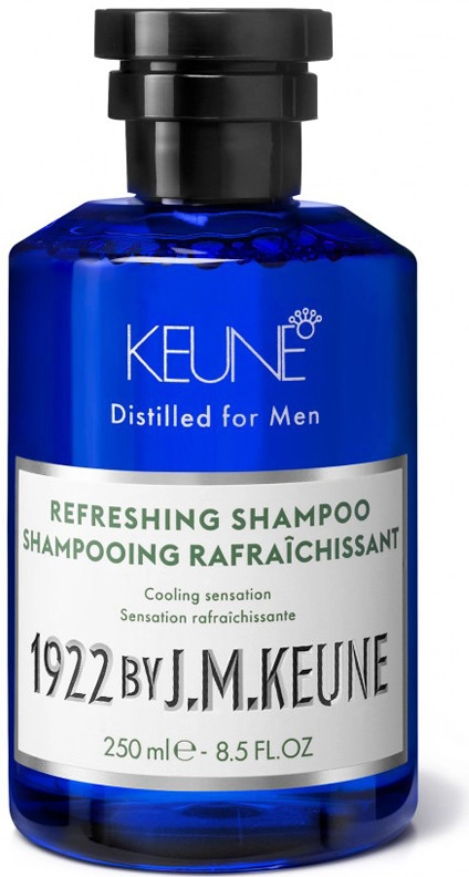 Keune 1922 by J.M. Keune Refreshing to idealny wybór dla mężczyzn poszukujących świeżości, czystości i energetyzującego efektu przy każdym myciu. Połączenie mentolu i mięty pobudza skórę głowy, a ekstrakt z konopi oraz kreatyna pomagają wzmacniać włosy i poprawiać ich ogólny wygląd.