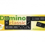 Odkryj ponadczasową zabawę z klasycznym domino w solidnym, plastikowym wydaniu. Zestaw zawiera 28 kamieni z wyraźnymi kropkami dla łatwego układania i przejrzystej gry. Kompaktowe pudełko umożliwia zabranie domina wszędzie – na wakacje, do dziadków i w podróż.