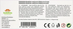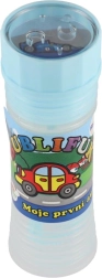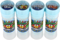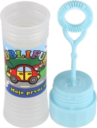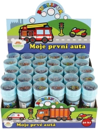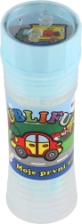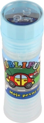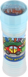 Zabawne bańki mydlane z motywem Moje pierwsze auta ucieszą dzieci od 3 lat. Każda buteleczka zawiera 50 ml roztworu, a w nakrętce kryje mini grę. Pompka do dmuchania jest częścią nakrętki.
