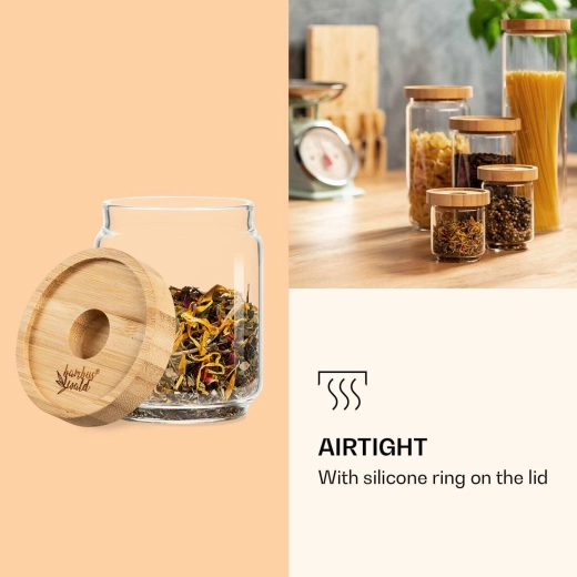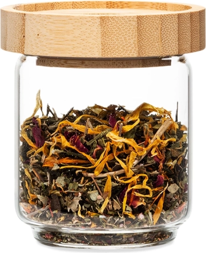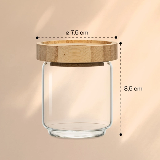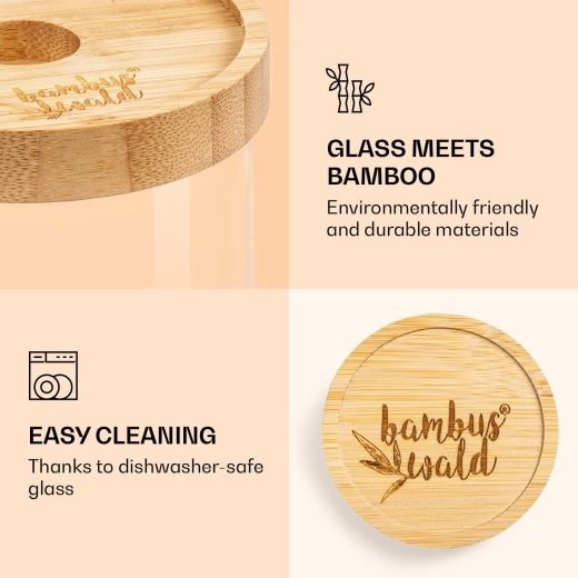 - 1× szklany pojemnik, 1× bambusowa pokrywka