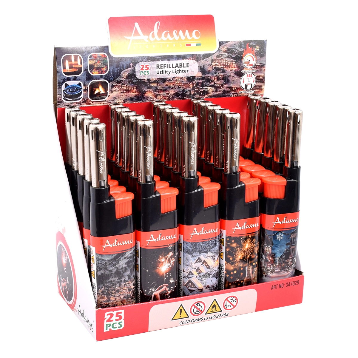 Stylowa gazowa zapalniczka z zimowo‑świątecznym motywem do codziennego użytku. Ma solidną obudowę, jest napełniana ponownie i oferuje niezawodne odpalanie. Idealna do domu, samochodu i w podróży. Opakowanie zawiera 25 sztuk, cena podana jest za 1 szt.