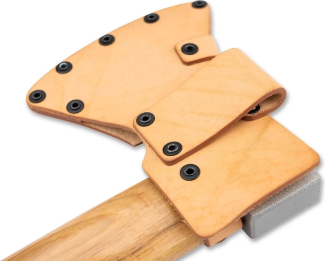 Podwójne paski z metalowymi napami stabilizują głowicę topora i utrzymują ją bezpiecznie na miejscu także w ruchu.