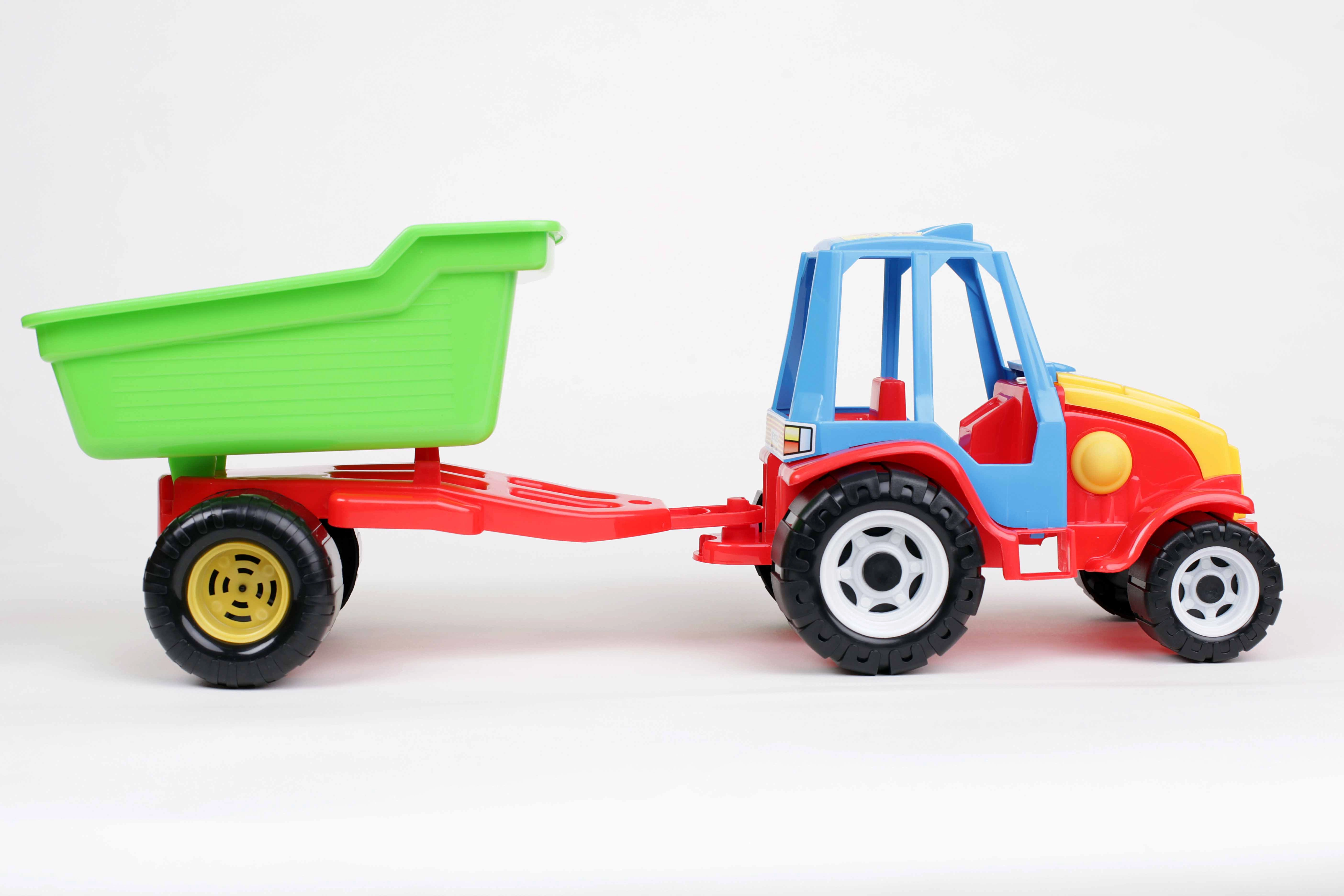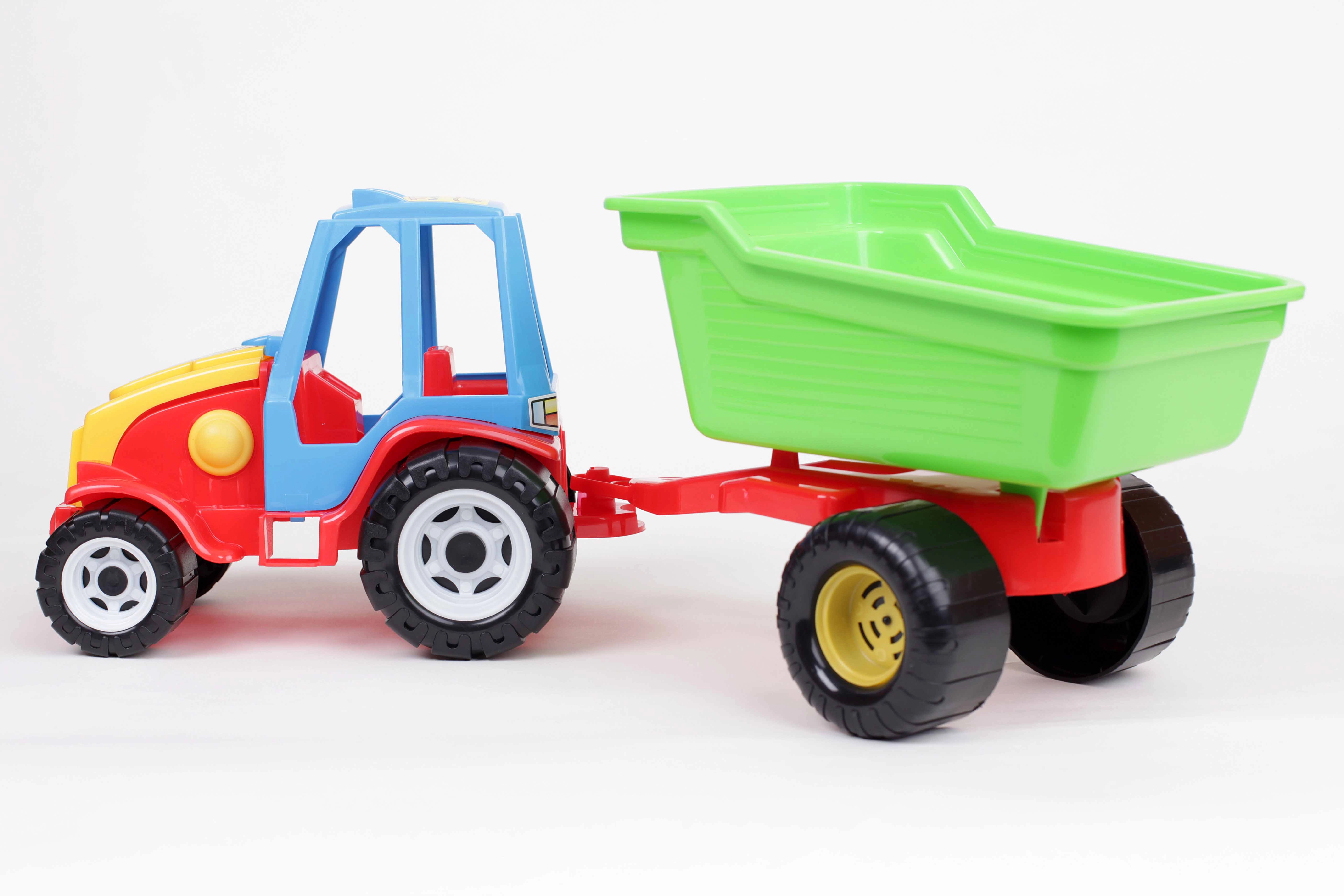 - Plastowy traktor z odczepianą, wywrotną przyczepą