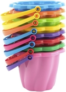 Ciesz się godzinami zabawy na plaży i w piaskownicy z lekkim i wytrzymałym wiaderkiem z wysokiej jakości plastiku. Dzięki pofalowanemu brzegowi i praktycznemu uchwytowi dzieciom łatwo trzymać i przenosić piasek oraz wodę. Wiaderko jest idealne do pierwszych zabaw z piaskiem i rozwijania małej motoryki.