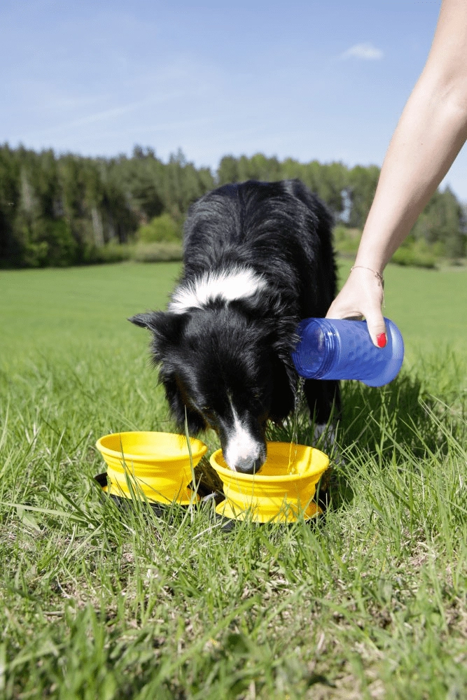 Kompaktowe rozwiązanie dla wody i karmy w jednej butelce. Idealne na spacery, wycieczki i podróże z psem.