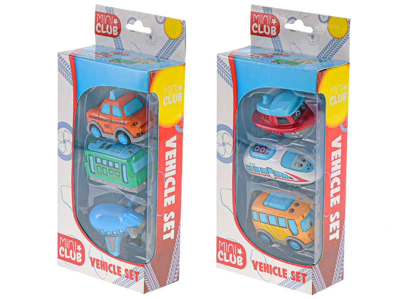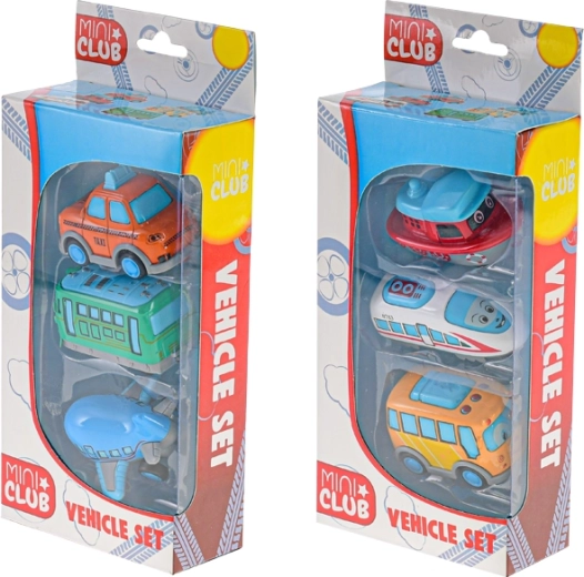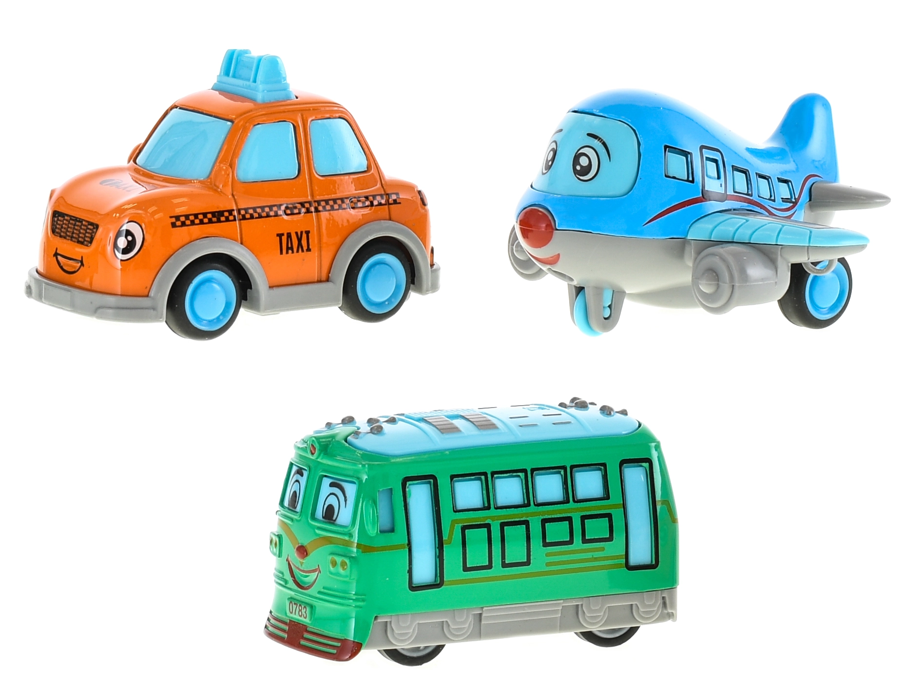 - 3 pojazdy w opakowaniu, miks aut, pociągu, samolotu lub łodzi