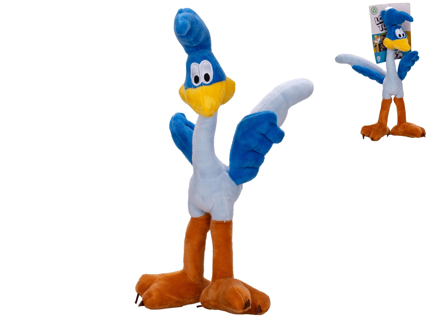 Urocza pluszowa zabawka ROAD RUNNER z animowanej serii LOONEY TUNES ucieszy małych i dużych fanów. Mięciutki i wytrzymały pluszak o wysokości 37 cm wiernie oddaje kultowy niebieski kolor i długie nogi superszybkiego ptaka. Jest odpowiedni od urodzenia, świetny do tulenia i zabawy, a dzięki wysokiej jakości materiałom jest bezpieczny i przyjemny w dotyku.
