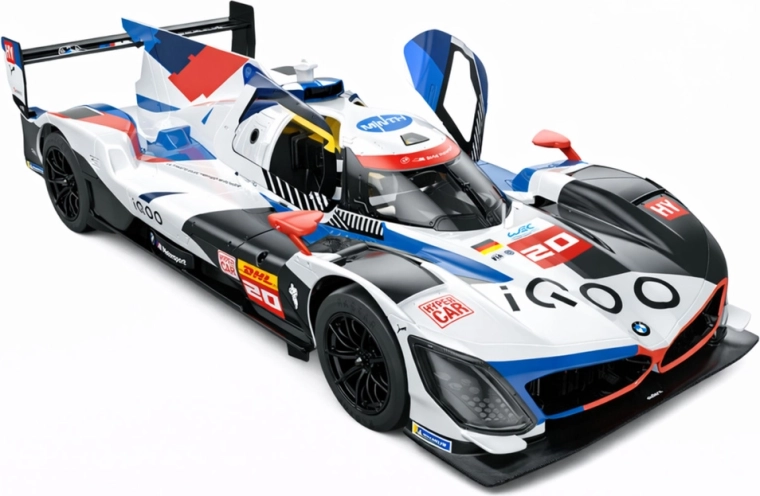 Model RC BMW M Hybrid V8 wiernie odwzorowuje prawdziwy wyścigowy samochód długodystansowy – od aerodynamicznego nadwozia po dopracowane detale kokpitu. Wysokiej jakości materiał ABS oraz precyzyjne komponenty mechaniczne i elektroniczne gwarantują wytrzymałość i niezawodność podczas jazdy w domu i na zewnątrz.