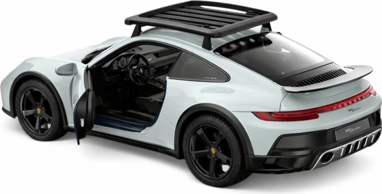 Dopracowane wnętrze, realistyczne reflektory i aerodynamiczne linie podkreślają autentyczność modelu Porsche 911 Dakar.