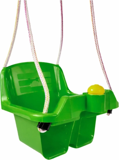 Głębokie siedzisko, wysokie oparcie oraz przednia barierka utrzymują dziecko w ergonomicznej i bezpiecznej pozycji podczas huśtania w domu i na zewnątrz.