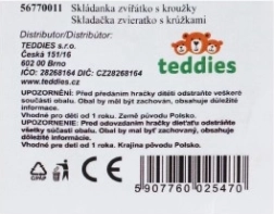 Zabawka wykonana jest z wytrzymałego, lekkiego plastiku o gładkich krawędziach i dostępna w 3 wariantach z różnymi kształtami krążków oraz zabawnymi zwierzęcymi motywami na szczycie. Praktyczne opakowanie w siatce ułatwia przechowywanie i przenoszenie.