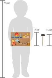 Ta kreatywna gra do wbijania to idealny wybór dla dzieci, które kochają tworzenie i świat strażaków. Dzięki prostemu systemowi elementów z nawierconymi otworami oraz bezpiecznemu drewnianemu młotkowi dzieci z łatwością ułożą własne motywy na korkowej tablicy lub skorzystają z dołączonych dwustronnych kart z propozycjami wzorów.