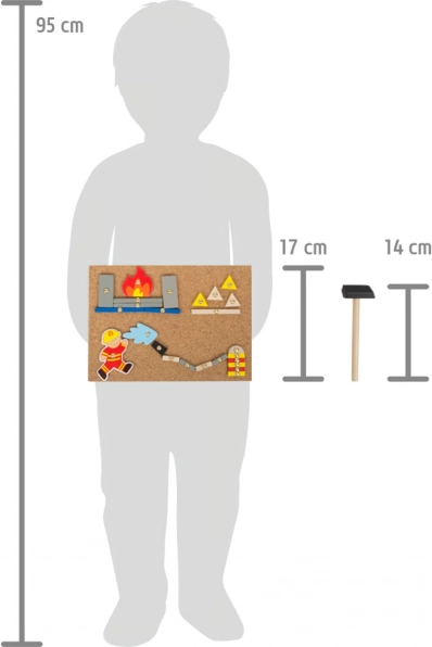 Kreatywna gra do wbijania Strażacy small foot: korkowa tablica, młotek, gwoździki i wzory. Wspiera kreatywność i małą motorykę. Wiek 6+.