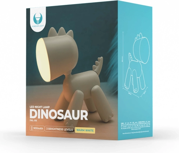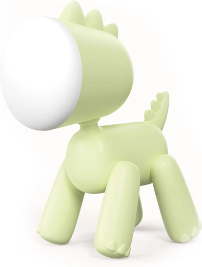 Urocza lampka nocna w kształcie dinozaura stworzy w pokoju dziecka przytulną atmosferę i ułatwi spokojne zasypianie. Emituje przyjemne ciepłe białe światło 3000K, które nie męczy oczu i jest idealne do czytania bajek oraz jako delikatne światło orientacyjne przez całą noc.
