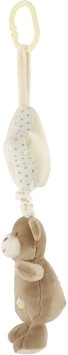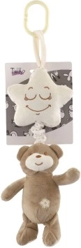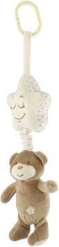 Ta urocza zawieszana zabawka łączy misia z kremową gwiazdką, w której wnętrzu ukryta jest pozytywka. Po pociągnięciu misia rozbrzmi przyjemna kołysanka, która uspokoi maluszka i ułatwi spokojne zasypianie w domu i w podróży.