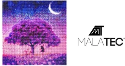 Motyw drzewa w różowo‑fioletowych tonach z półksiężycem tworzy efektowną mozaikę, która pięknie mieni się w świetle.