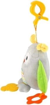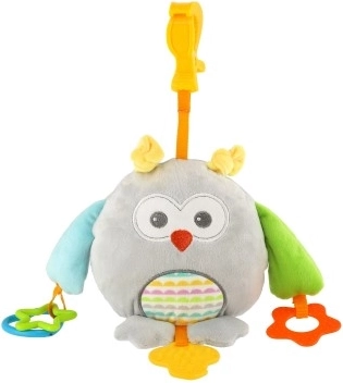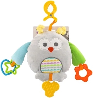 Ta pluszowa sowa to idealny towarzysz w podróży i w domu. Dzięki uniwersalnemu klipsowi łatwo przymocujesz ją do wózka, fotelika samochodowego lub krawędzi łóżeczka. Mięciutkie ciało, zróżnicowane faktury i wyraziste kolory naturalnie pobudzają wzrok, dotyk i słuch maluszka.