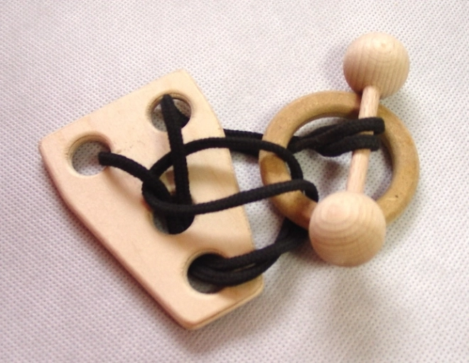Zadaniem łamigłówki jest wyjęcie hantli, co wymaga połączenia logicznego myślenia i zdolności manualnych. Wykonana ręcznie z wysokiej jakości drewna czeskiej produkcji, ta łamigłówka ucieszy każdego miłośnika mądrych zabawek.