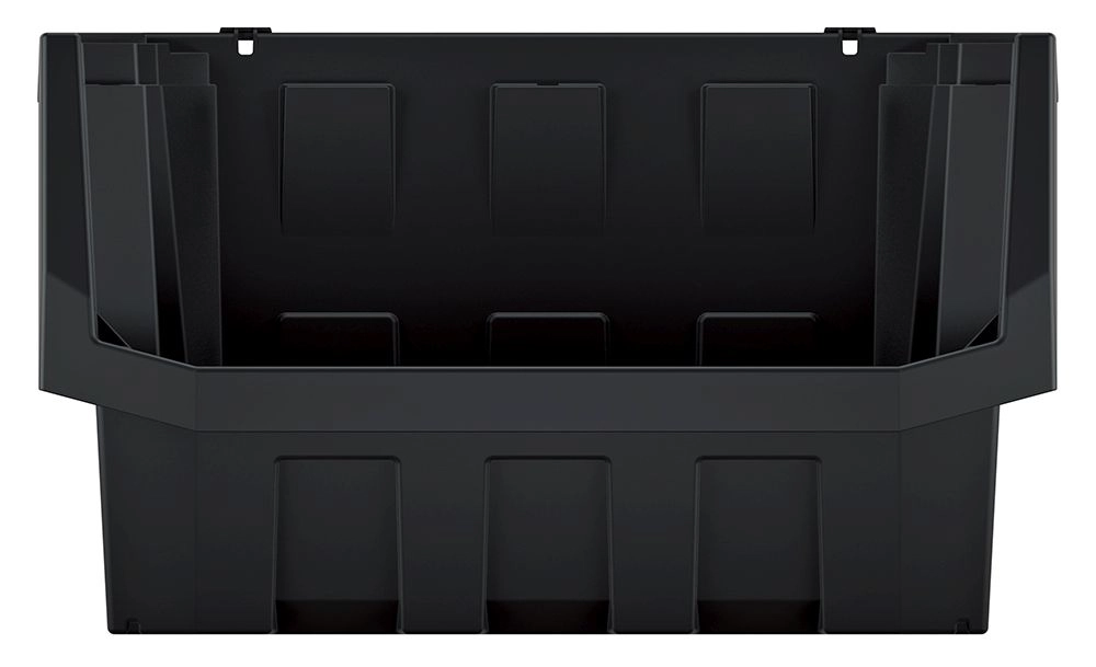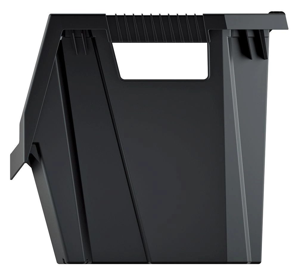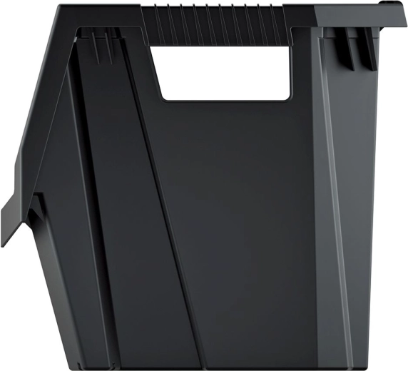 Przemyślana konstrukcja umożliwia bezpieczne piętrowanie kilku pojemników oraz łatwe wsunięcie na półki i regały. Elegancki czarny design wpasuje się w każde otoczenie i pomoże utrzymać przejrzyste oraz efektywne przechowywanie.