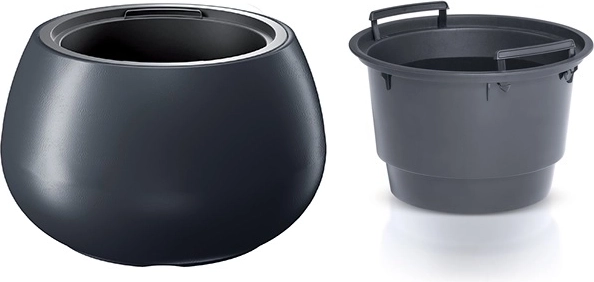 Wyjmowany wkład oszczędza czas i materiał – nie ma potrzeby wypełniania całej objętości podłożem, co ułatwia sadzenie oraz późniejsze podlewanie. Materiał odporny na mróz i promieniowanie UV pomaga zachować kolor i kształt przez długi czas.