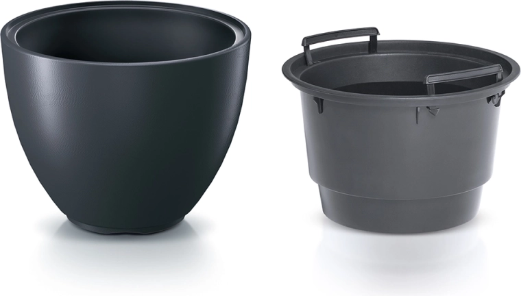 Elegancka donica HEOS z wkładem o średnicy 46,9 cm w kolorze antracytowym idealna do wnętrz i na zewnątrz. Oferuje nowoczesny minimalistyczny design, odporny plastik na mróz, promieniowanie UV i wysokie temperatury oraz łatwą obsługę dzięki wewnętrznemu wkładowi. Doskonale sprawdzi się w domach, biurach i przestrzeniach komercyjnych.