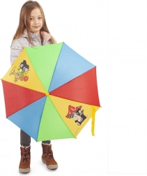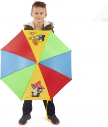 Koniec pośpiechu przed ulewą – parasol dziecięcy z motywem KRETEK jest praktyczny, lekki i bezpieczny do codziennego noszenia. Kolorowe panele z wesołymi ilustracjami przyciągają uwagę, a żółta zakrzywiona rączka idealnie leży w małych dłoniach.