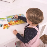 Każdy element jest na tyle duży, by małe dziecięce rączki mogły łatwo go chwytać i nim manipulować. Doskonałe do wspierania rozwoju języka poprzez rozmowy o przedstawionych stworzeniach i ich środowisku. Puzzle wykonano z wysokiej jakości, odpowiedzialnie pozyskiwanego drewna, spełniającego normy bezpieczeństwa UE.