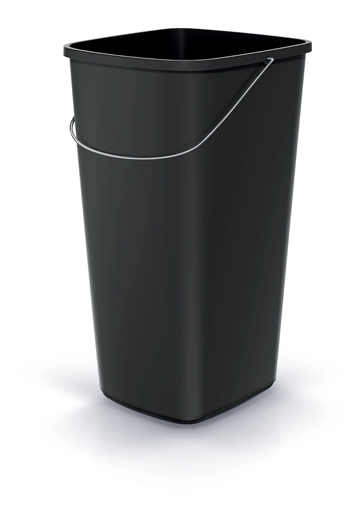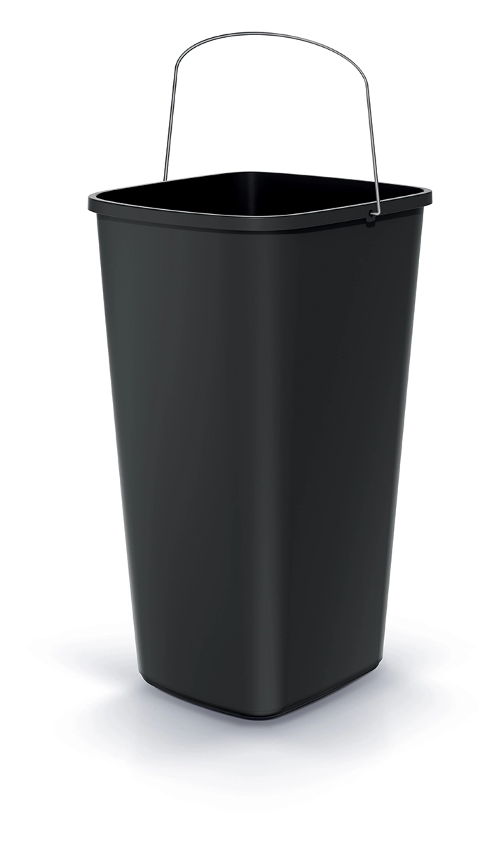 Dzięki kompaktowym wymiarom 28,7 × 26,4 × 49 cm i zwężanemu kształtowi zmieści się nawet w węższych przestrzeniach – przy biurku, w aneksie kuchennym lub strefie porządkowej. Gładka powierzchnia minimalizuje osadzanie się zabrudzeń i znacząco ułatwia pielęgnację. Wytrzymały metalowy uchwyt ułatwia manipulację i przenoszenie, a otwarta konstrukcja bez pokrywy przyspiesza codzienne wyrzucanie odpadów.